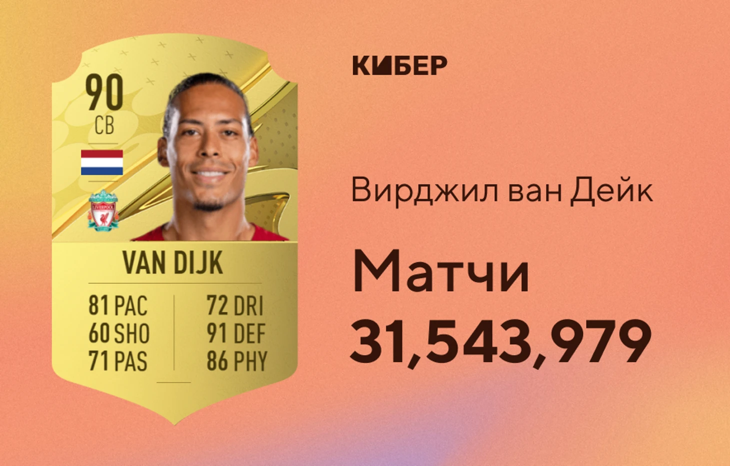 Вирджил ван Дейк – самый популярный игрок FIFA 23. Нидерландский центрдеф «Ливерпуля» сдал после травмы «крестов», но в игре он прекрасен. Ван Дейк – эталонный защитник с фантастическим спринтом (91) и огромной моделью, которая расталкивает нападающих соперника как кегли. Недавно Вирджил попал в символическую сборную прошлого года – фанаты просто не придумали более интересной альтернативы.