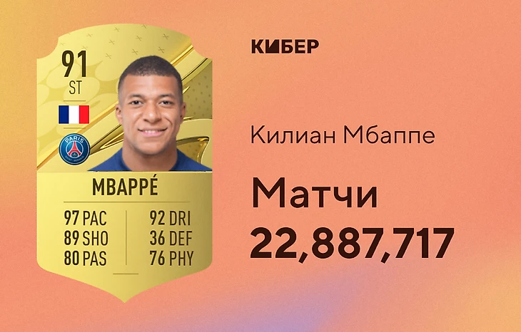 Килиан Мбаппе – суперзвезда FIFA 23. Самый быстрый игрок футсима получил отличное завершение (93) и 5 ⭐ финтов, поэтому до сих пор стоит около миллиона монет. Эгоистичность Килиана ругали в начале сезона, но ЧМ-2022 сильно улучшил его репутацию. Кажется, в новой части Мбаппе единолично возглавит рейтинг футсима.