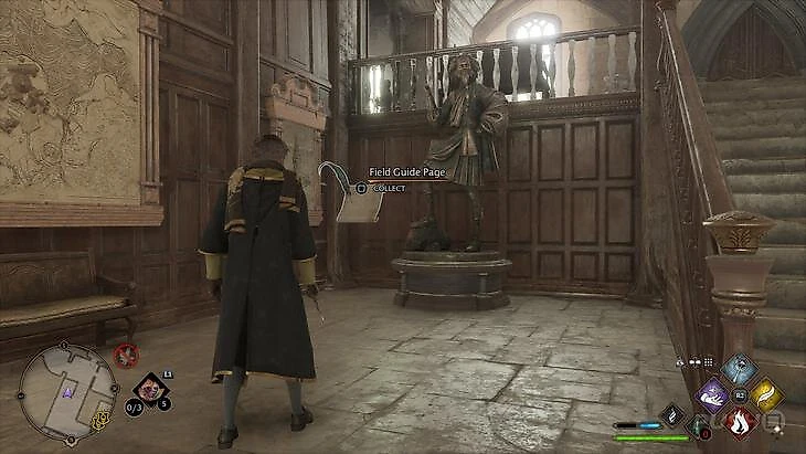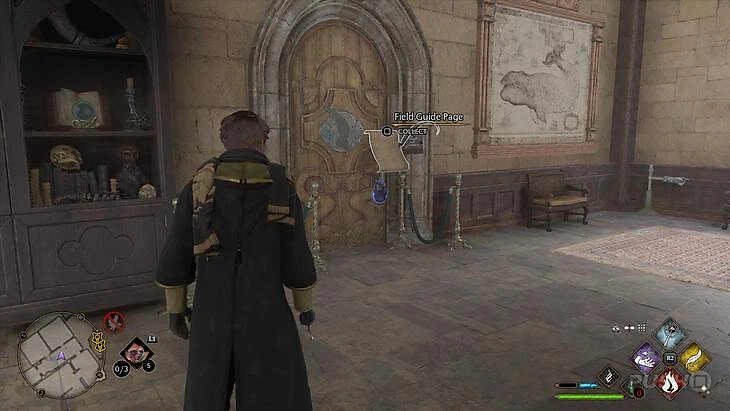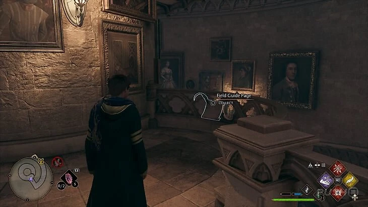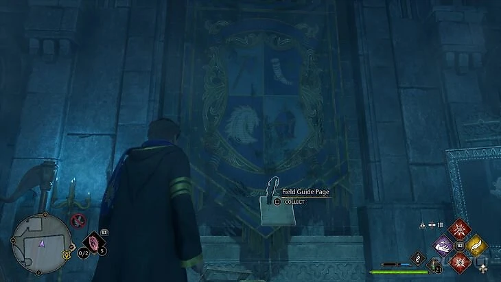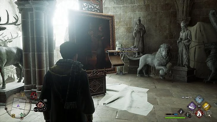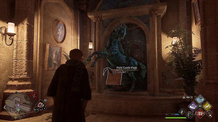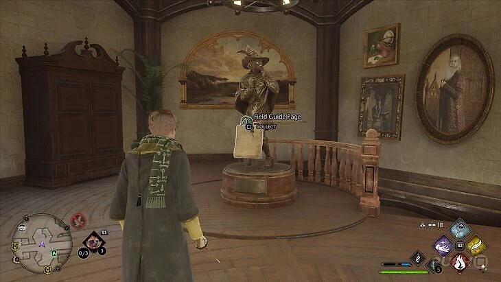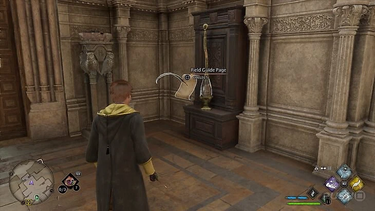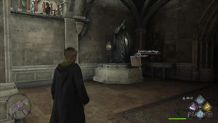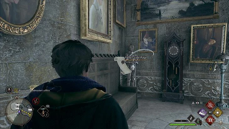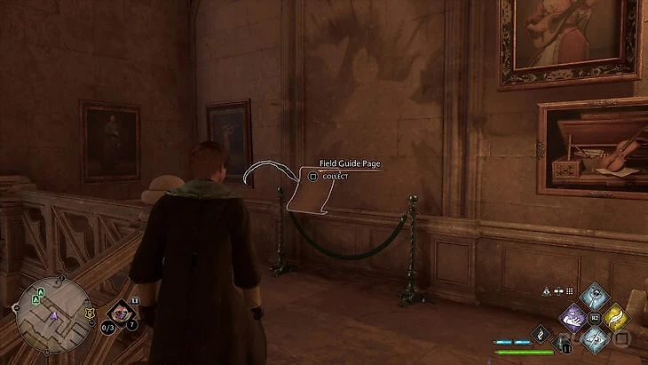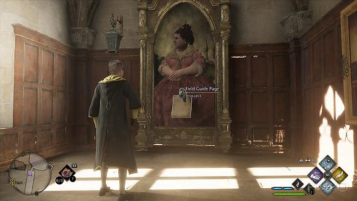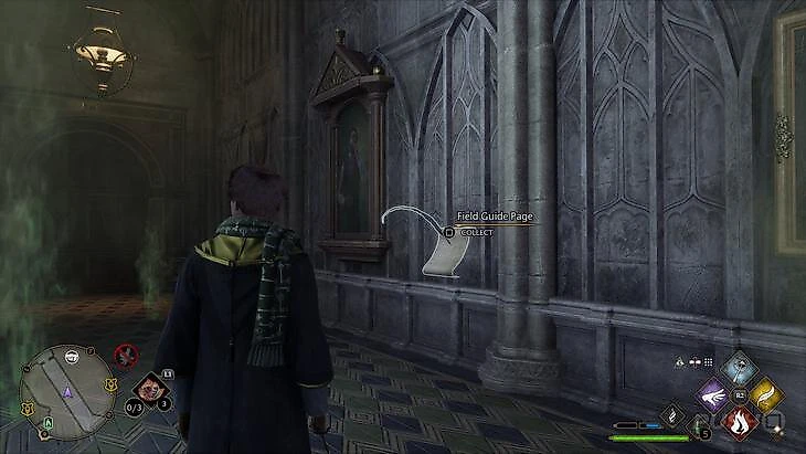 От летучего пламени во дворе трансфигурации поверните направо и войдите внутрь башни защиты от темных искусств. Идите направо, и вы увидите большой портрет, а рядом страницу.