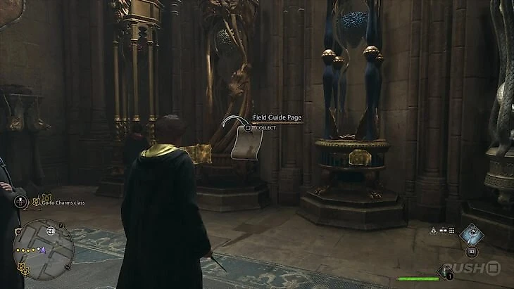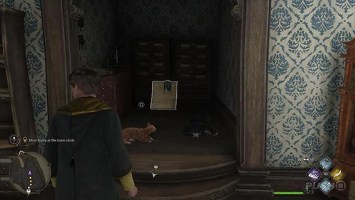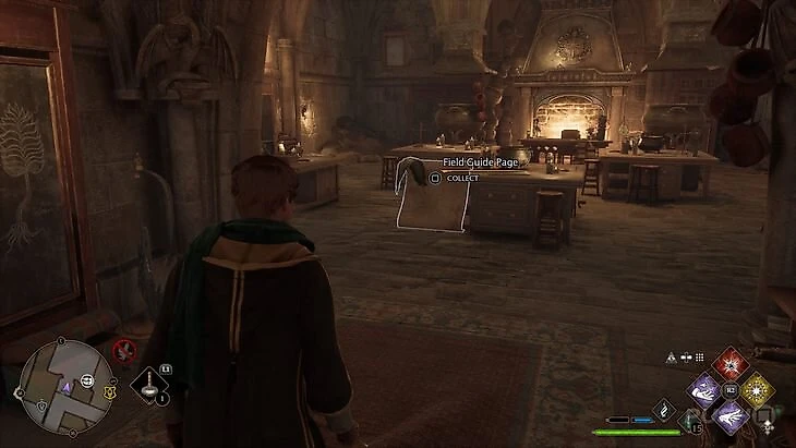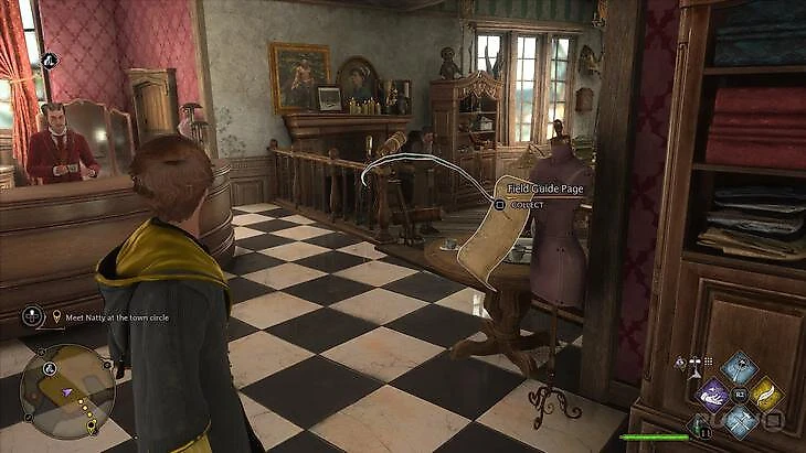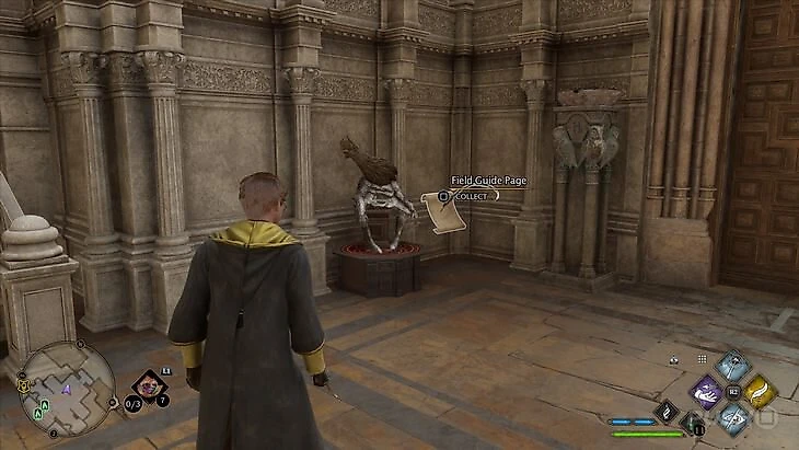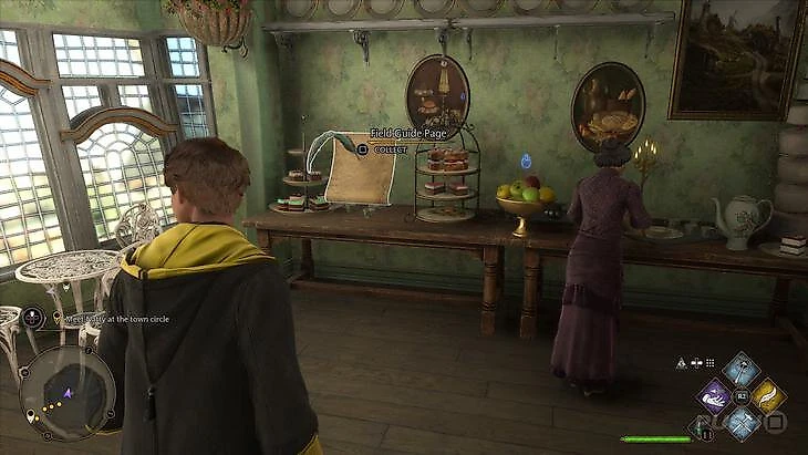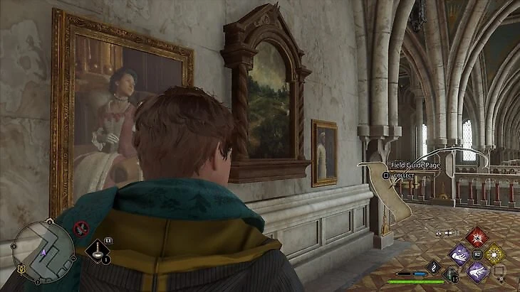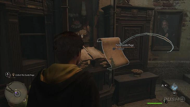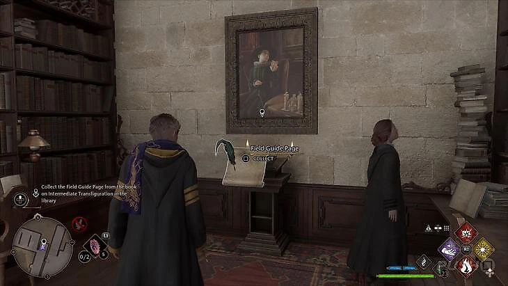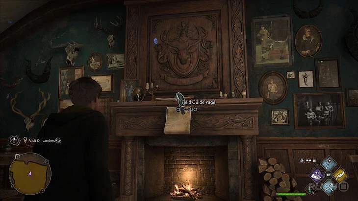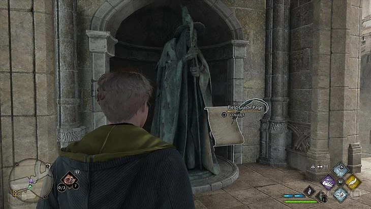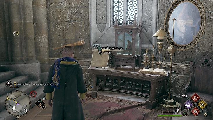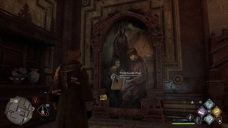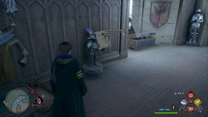 От летучего пламени во дворе трансфигурации поверните направо и войдите внутрь башни защиты от темных искусств. Идите направо, и вы увидите большой портрет, а рядом страницу.