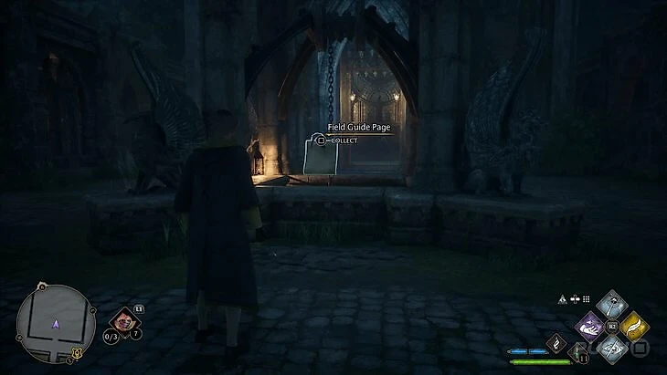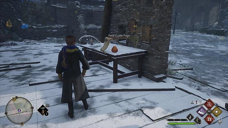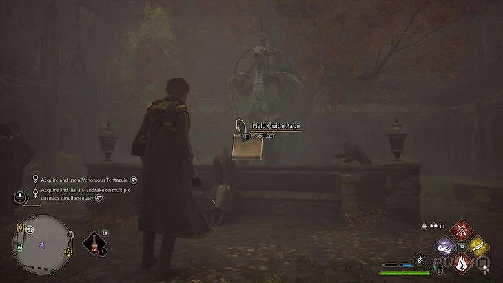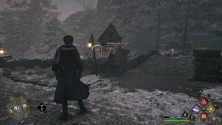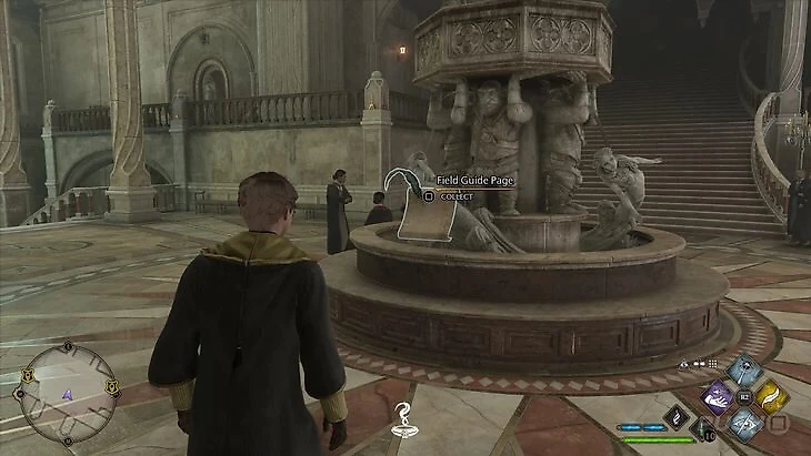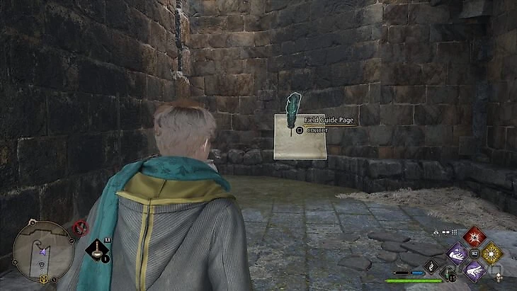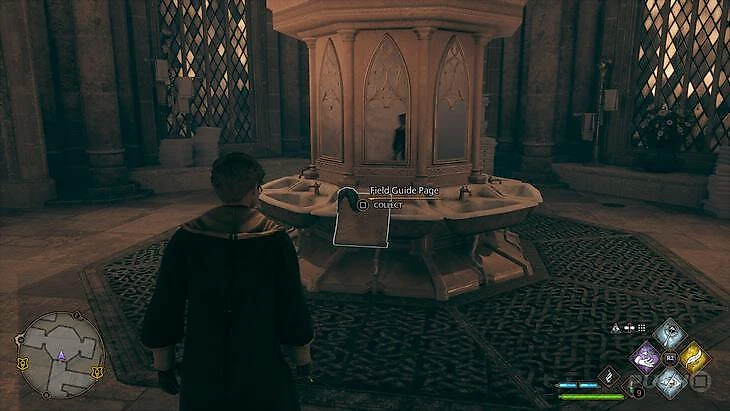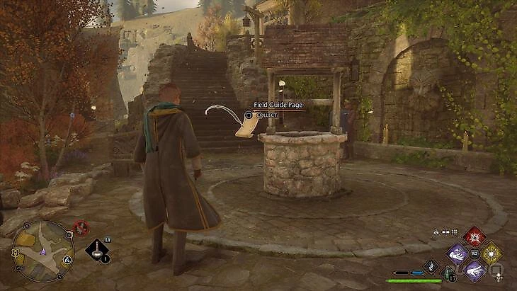 От летучего пламени в Южном выходе из Хогвартса перейдите мост к замку. Во дворе Часовой башни вы увидите колодец, где и находится страница.