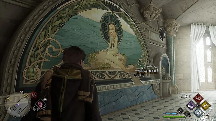От летучего пламени в классе прорицаний развернитесь и идите по виадуку вперед и направо. Откройте дверь-головоломку, ведущую в кабинет нумерологии, и идите дальше по коридору. Страница находится на входе в класс.