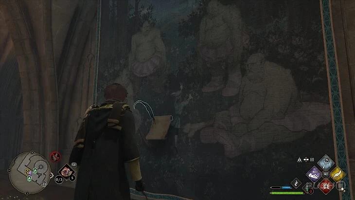 Поднимитесь по лестнице из класса заклинаний в Астрономической башне. Продолжайте путь наверх, пока не найдете большой гобелен на правой стене.