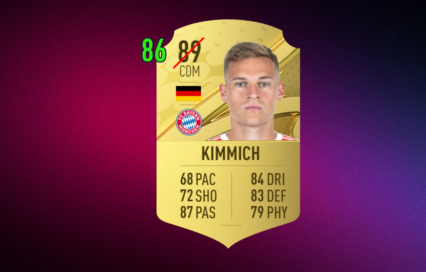 Универсальный опорник «Баварии» – давний лидер клуба. Йозуа Киммих добрался до рейтинга 89, но его статы далеки от топовых: средняя защита (83), спринт всего 60, а с силой 68 ему трудно отталкивать соперников. У Киммиха шикарный пас, но в футсиме EA он ничего не значит.