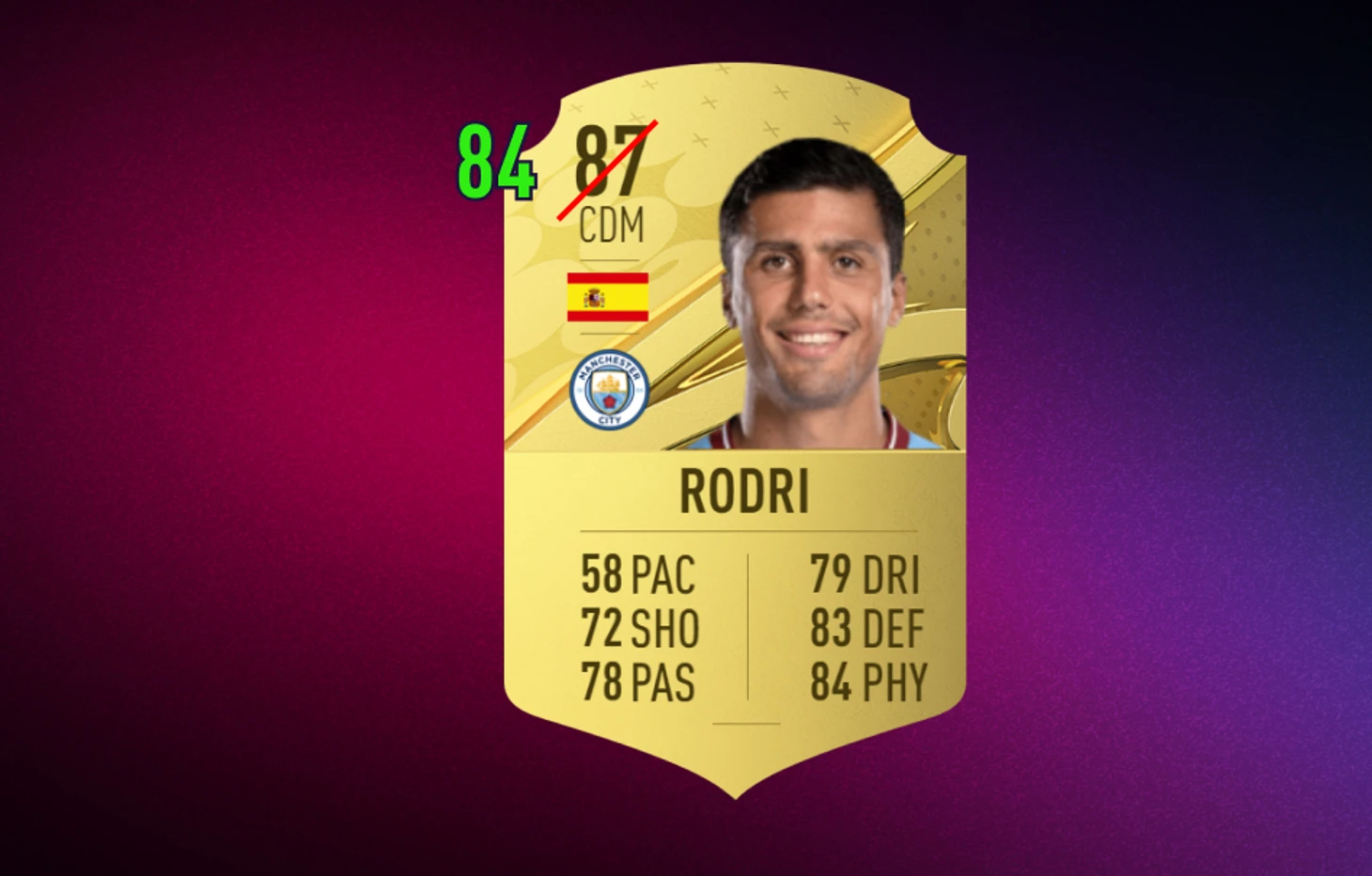Родри – звезда полузащиты «Сити», но в FIFA 23 он очень слаб. У хавбека низкая скорость (58), а средние навыки и игра головой недостаточно хороши для высокого рейтинга. Если EA не пересмотрит отношение к испанцу, он превратится в очередного Бускетса.