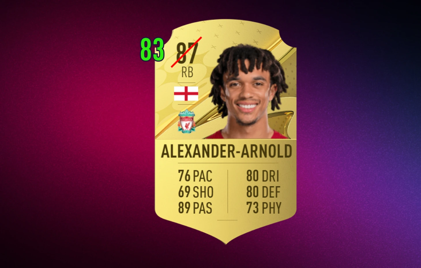 Результативность Трента в этом сезоне сильно упала, его даунгрейд – дело времени. Карточка англичанина в FIFA 23 ужасна из-за скорости (76), а хорошие передачи бесполезны в вакууме и ценятся игроками только в дорогих специальных улучшениях. Может, распасовщику Тренту и правда лучше в полузащите?