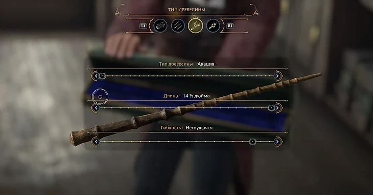 Тип дерева. Решите, из какого дерева будет сделана ваша палочка, а также настройте ее длину и гибкость.