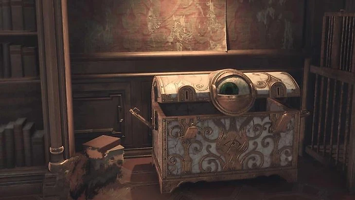 Особенностью сундуков с глазом является не только глазное яблоко вместо замка, но и проявление в нем живого существа, напоминающего мимика. Такие ларцы могут подпрыгивать, пока игрок не приблизился к нему. Когда вы появляетесь в поле зрения сундука, то он становится настороженным. Это можно заметить по его следящему глазу.