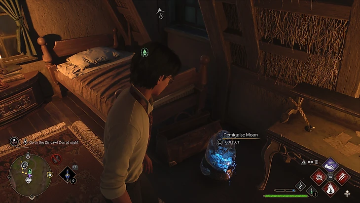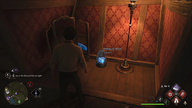 Неподалеку от Хогвартса располагается местечко Киндейл (Keendale). Там есть маркер быстрого перемещения. От него идите к дому на холме. Выделяться это здание будет по нескольким большим тыквам, растущим в огороде. Дверь нужного дома будет открыта. Забирайте очередную статуэтку Демимасок в коллекцию и продвигайтесь дальше.