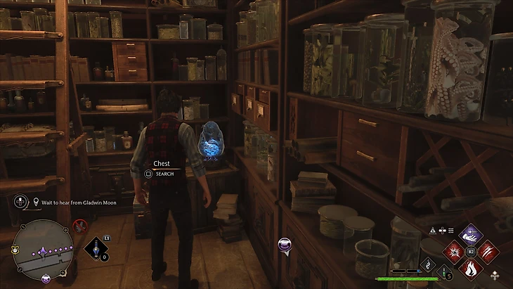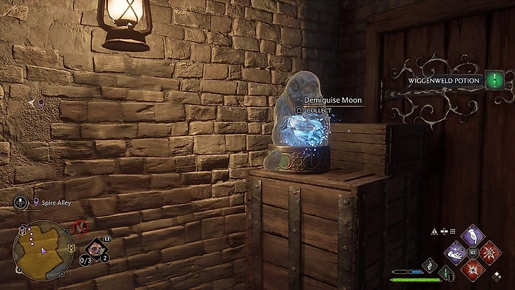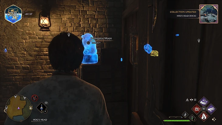 Правее от магазинчика «Зелья Дж. Пепина» находится здание с закрытой дверью второго уровня. Чтобы попасть внутрь, вам потребуется собрать не менее 9 лун и отдать их Глэдвину Муну. Теперь можете забрать свой трофей, для открытия высоких уровней заклинания Алохомора.