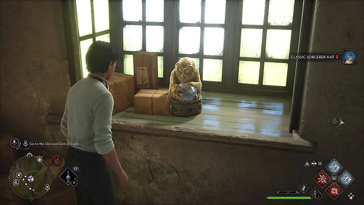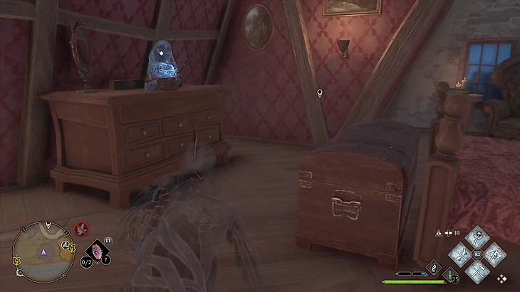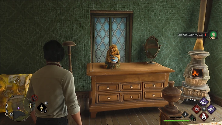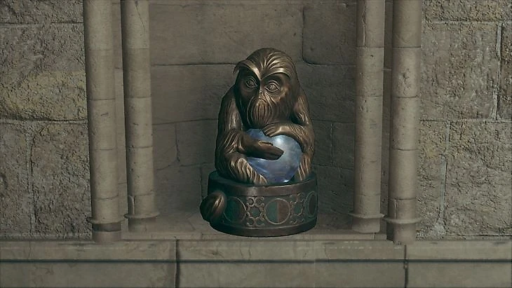 Следующий трофей спрятан в кабинете, где стоит шкаф с боггартом на первом этаже Башни защиты от темных искусств. Помещение закрыто замком Алохомора 2-го уровня. Когда попадете внутрь, статуэтка будет находиться на боковом столике.