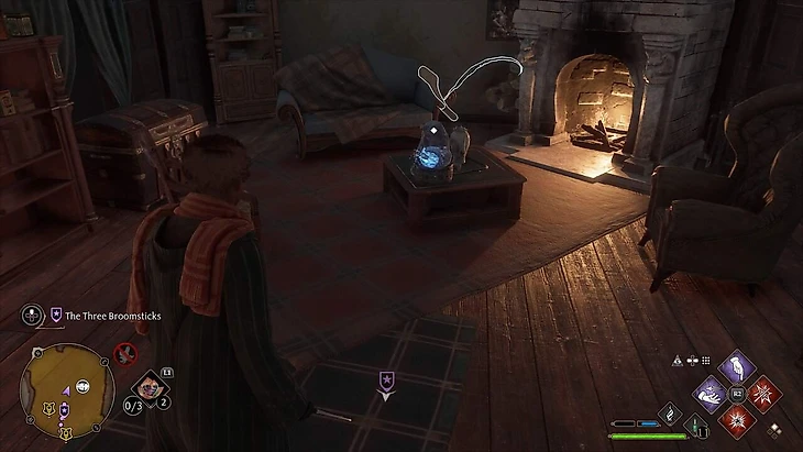 Последняя статуэтка Камуфлори в локации Хогсмида (Hogsmeade Valley) располагается в здании правее от трактира «Три Метлы». Вы отыщите трофей за закрытой дверью первого уровня.