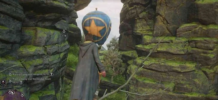 На южной стороне Хогвартса находятся шпили, которые вам нужно правильно облететь. Найти их вам поможет маркер квеста. Следите за его подсказками. Теперь нужно совершить облет всех пяти шаров, которые находятся в этой локации.