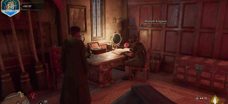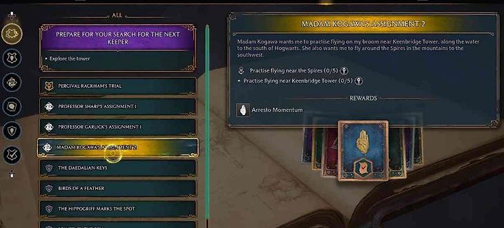 В Хогвартс Наследие предусмотрено два задания от мадам Когавы. С нашей помощью вы пройдете все этапы второго квеста от Когавы и получите в виде награды «Арресто Моментум» и 150 XP. Уровень сложности здесь пятый. Получить задание вы сможете, когда доберетесь до крыла колокольной башни и оттуда выйдете на лужайку для полетов на метлах. Получить второе задние можно только после выполнения первого и никак иначе.