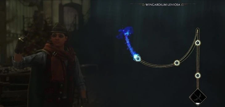 После выполнения всех заданий возвращайтесь к профессору, чтобы изучить Вингардиум Левиоса – заклинание левитации. Фиксируйте свою палочку левым застрявшим и направьте ее на путь, где находится символ. Этот прием вам необходим, чтобы выучить заклинание. Главное не отпускайте левый стик и не забывайте нажимать на соответствующую кнопку, чтобы не потерять искру. Заклинание используется для левитации и перемещения объектов. Используйте D-pad, чтобы точно настроить расстояние и поворот.