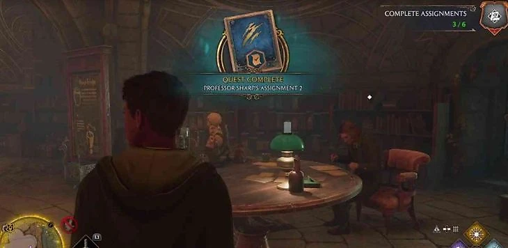 Профессор Шарп находится в крыле библиотеке и ждет вас в классе зелий. Здесь вы получите задание и отправитесь его выполнять.