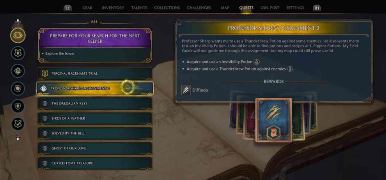 В компьютерной игре Хогвартс Легаси профессор Шарп дает два поручения, которые игрок должен выполнить. Сегодня мы расскажем вам, как выполнить второе задание от профессора. Приступать к выполнению задания можно только закончив первое испытание. Наградой за качественно выполненное поручение будет заклинание Диффиндо и 150 XP. Профессор научит вас применять Грозовой напиток, чтобы вы смогли использовать его на нескольких врагах одновременно. Вам будет поручено проверить новое зелье, которое дает владельцу возможность быть невидимым. Карта всегда будет более полезной, чем полевой справочник при выполнении этого поручения.