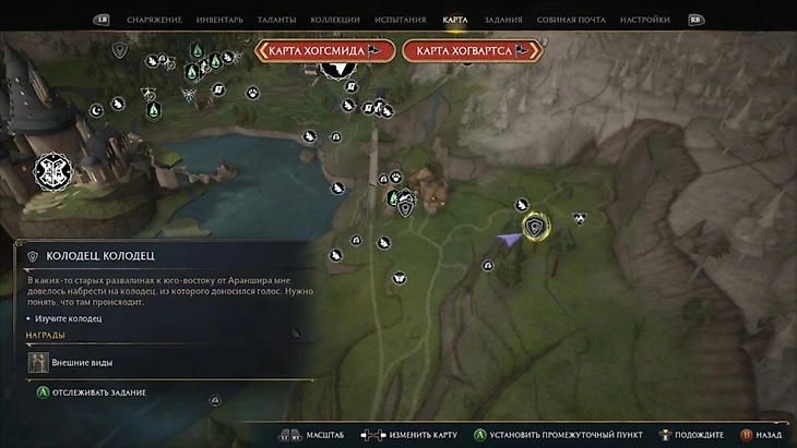 В Hogwarts Legacy много карт сокровищ. Одна из них лежит в говорящем колодце. На какое место она указывает?