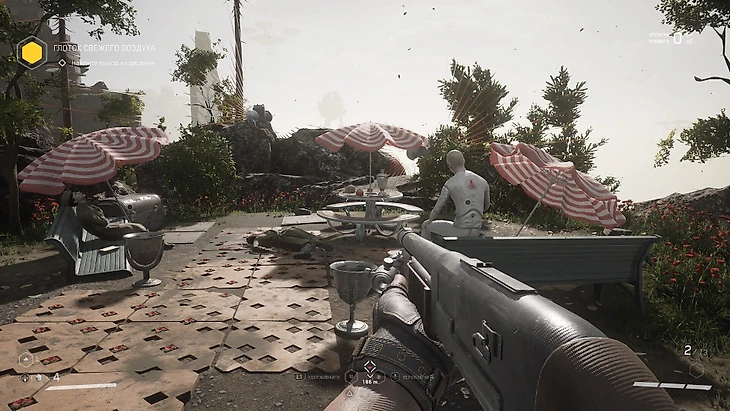 Внимание к деталям запредельное. В комнатах отдыха показывают «Ну, погоди», а экран смерти напоминает, как вас прикончили.