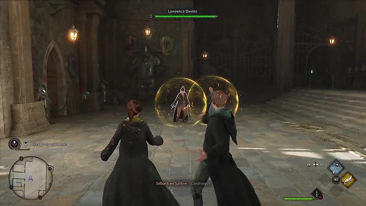 Стоит отметить, что враги будут использовать щиты разного цвета. Желтый щит разрушается с помощью Левиосо, а фиолетовый — Акцио.