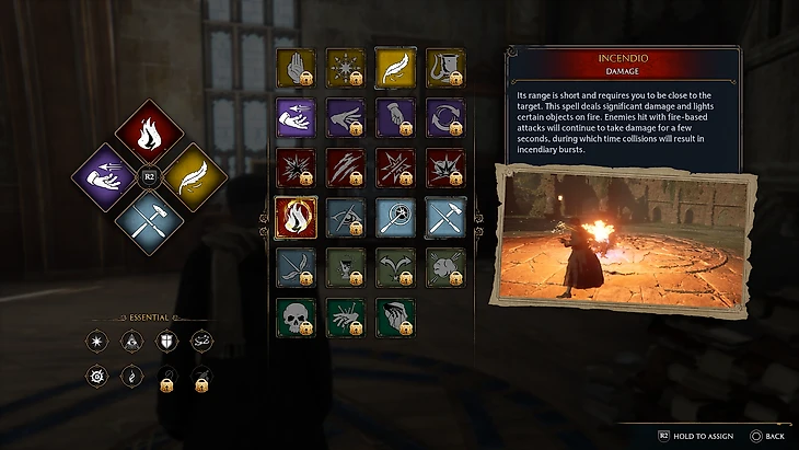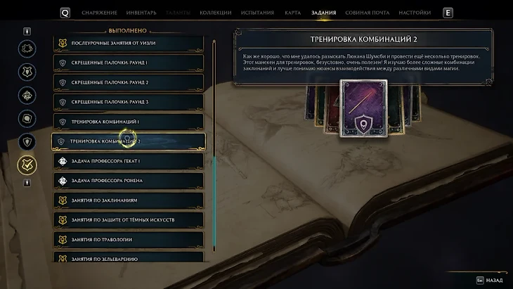 После выполнения миссии «Книги и невзгоды», разблокируется побочное задание «Тренировка комбинаций 2». В этот раз вам потребуется изучить заклинание «Инсендио» («Incendio»).