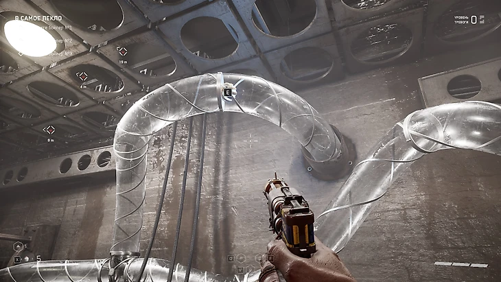 1. Вы добрались до котельной и уничтожили роботов-лаборантов. Найдите лопнувший котел с охлаждающими свечами. Он находится в правой части комнаты. Притяните один из шаров.