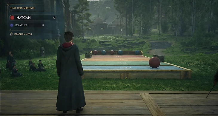 Вам предложат сыграть в мини-игру «Поле призывателя», в которой с помощью «Акцио» нужно двигать шары по разноцветному полю. Для этого примените «Акцио» к шару, а как только он окажется в нужном месте – нажмите кнопку заклинания еще раз, чтобы прекратить его действие и остановить шар. Учитывайте, что какое-то время шар будет продолжать двигаться по инерции.