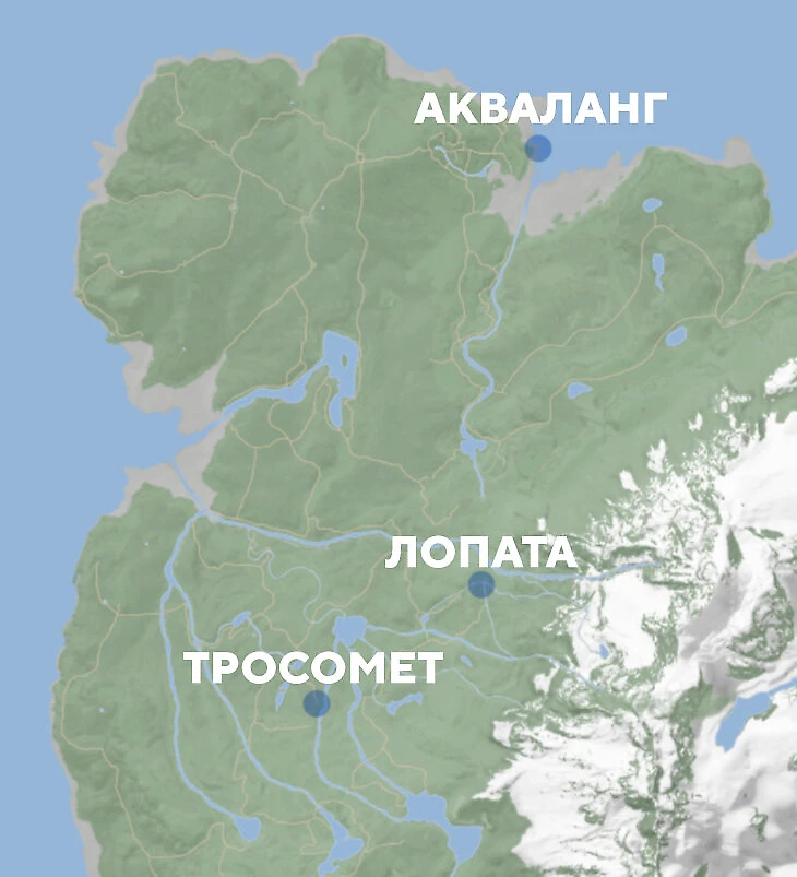 Первая часть поисков – лопата. Чтобы ее найти, нужно сперва обзавестись аквалангом и тросометом.