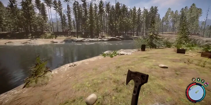 Найдите на карте озеро, посреди которого находится маленький островок. В Sons of the Forest враги не умеют взаимодействовать с водой, в отличие от выживших, поэтому идеальным вариантом для базы будет именно это местечко. Для ролевого отыгрыша в одиночку у этого места лишь один недостаток – Кевин не умеет плавать, поэтому останется на берегу. Однако с ним ничего не случится, поручите ему заняться делом, а потом плывите забирать результаты.