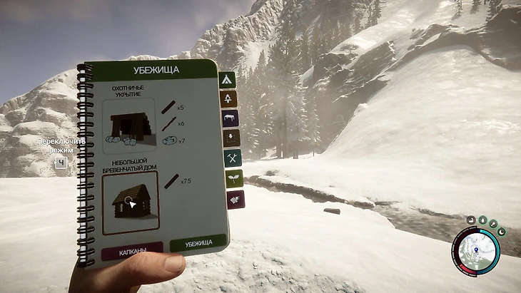 Нужен костер? Наломайте сухих веток, бросьте на землю и подожгите зажигалкой. Наступила ночь? Разложите брезент, закиньте его край на палку, которая станет опорой, и отдохните в импровизированном убежище. Мечтаете о надежном доме? Валите деревья и складывайте друг на друга.