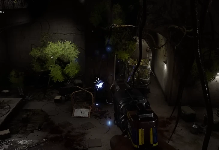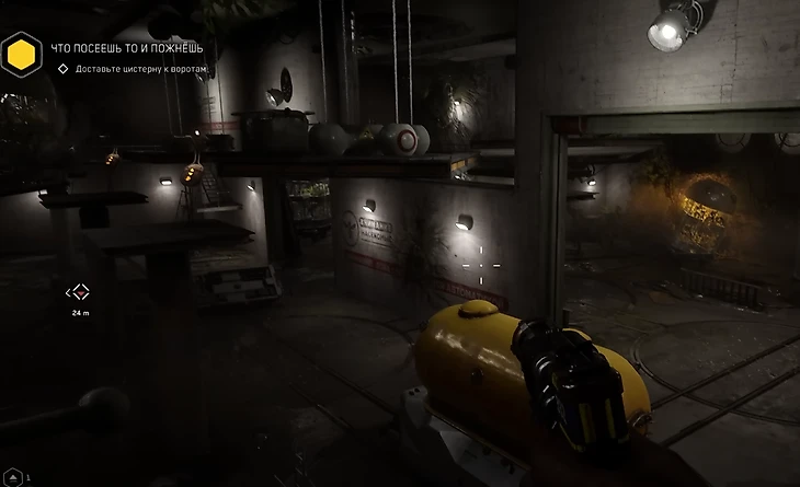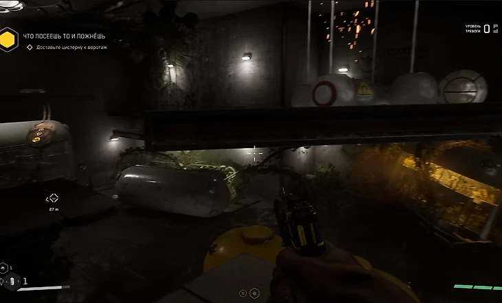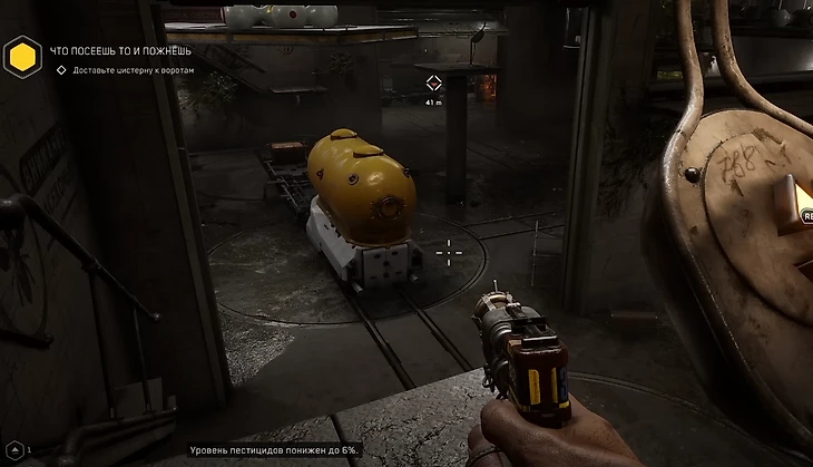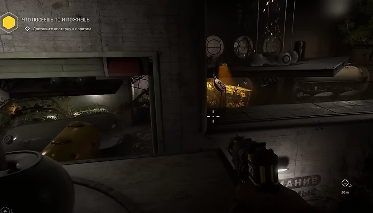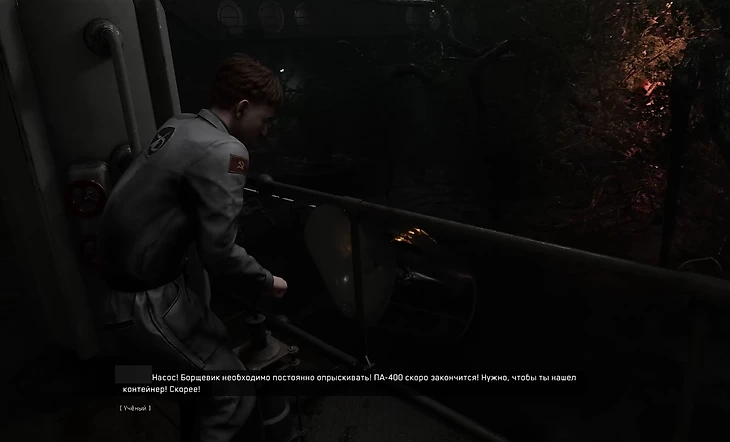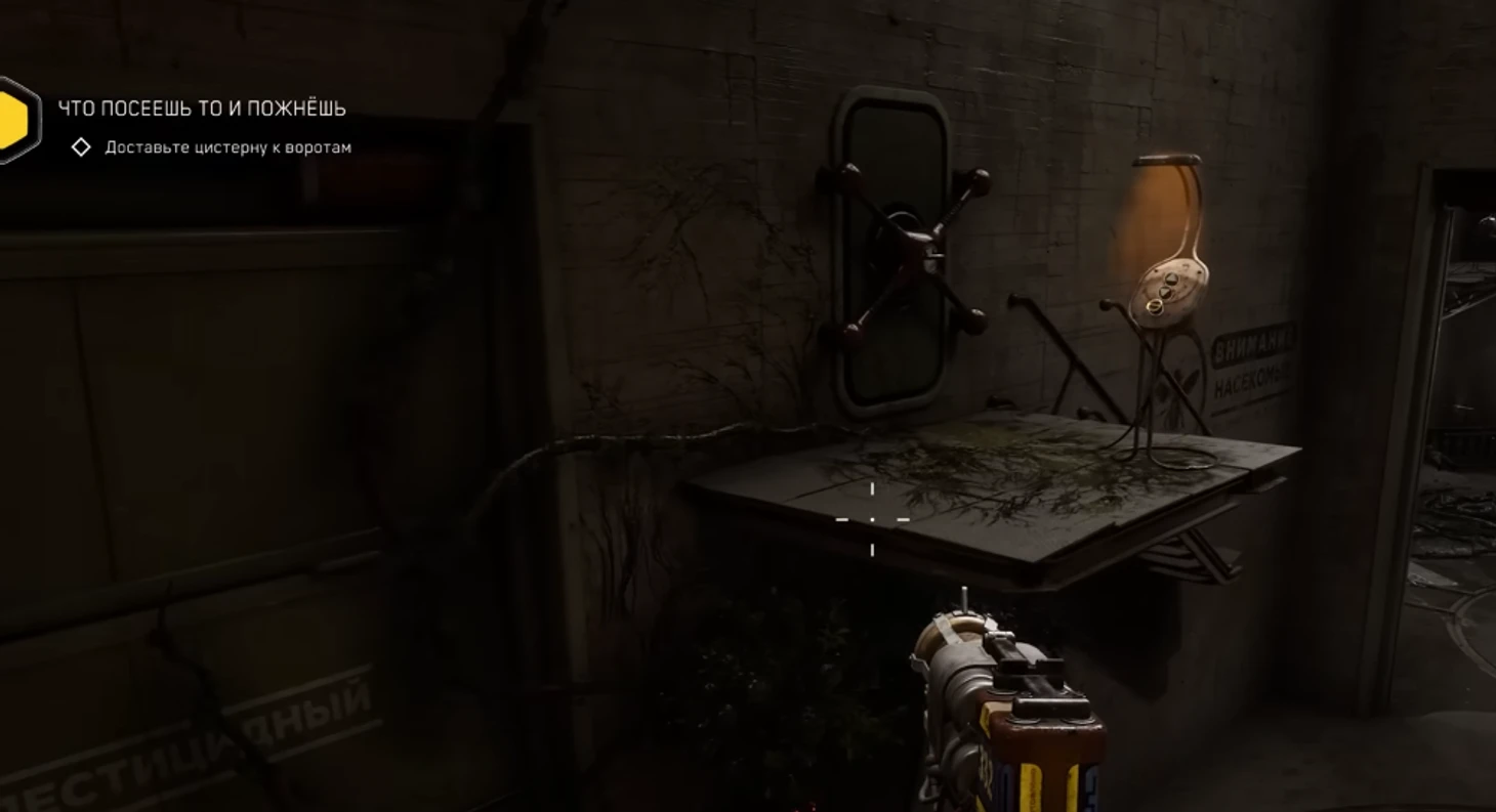 После «Марша цветов» вам нужно еще недолго побродить по коридорам, после чего дойти до чекпойнта, где начнется кат-сцена с ученым в пестицидном цехе. Вы узнаете, что борщевик нужно постоянно опрыскивать, но ПА-400 заканчивается – и вам нужно найти желтый «бидон» с ним.