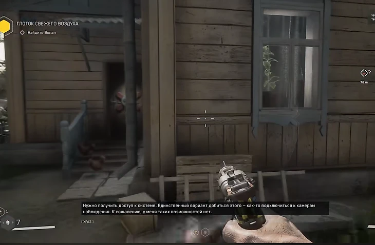 Миссия «Глоток свежего воздуха» завершается. Спускайтесь вниз и идите на обновленную метку, чтобы выполнить задание «Домик в деревне».