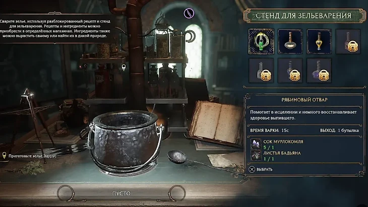 Для приготовления зелья в Hogwarts Legacy используются специальные стенды. Один с маленьким горшком всегда стоит в классе зельеварения, другие появятся в локации, которую вы откроете дальше по сюжету.