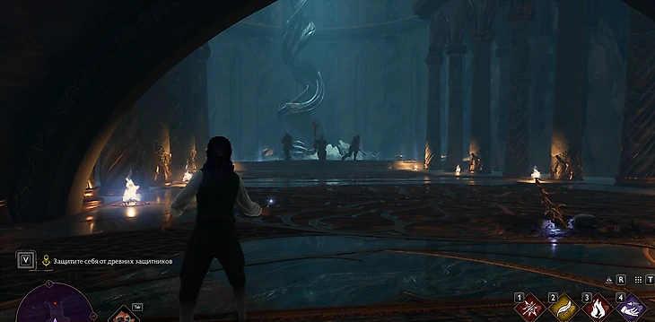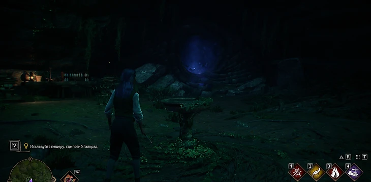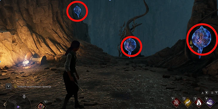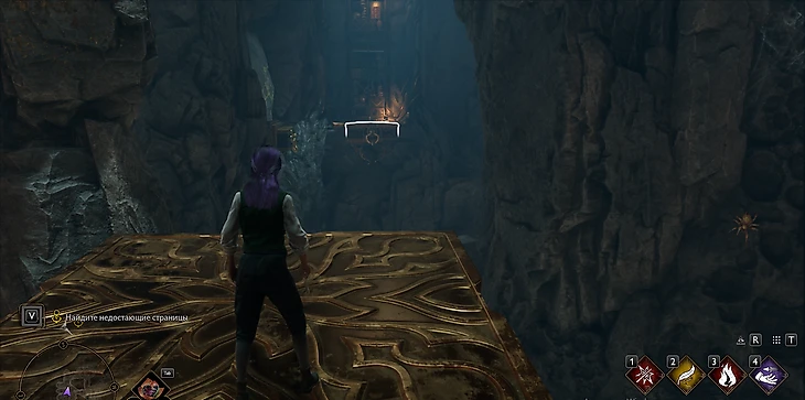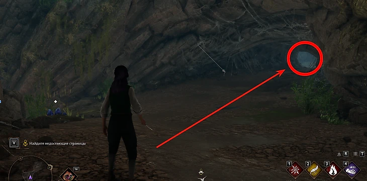 В пещере на вас будут периодически нападать пауки, как с ними справляться – вы уже знаете. Практически сразу вы окажетесь перед запертой дверью. Чтобы ее открыть, атакуйте руны на стене «основным заклинанием» – ЛКМ/R2/RT (ПК/PlayStation/Xbox).
