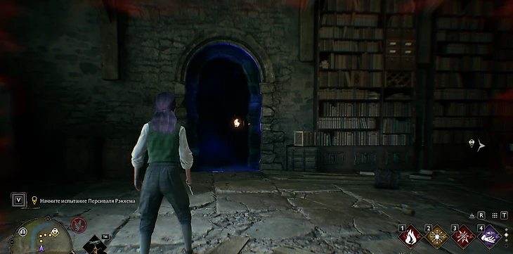 Войдите в портал – вас ждет первое сражение со стражами. Используйте «Экспеллиармус», чтобы выбивать оружие из их рук, а затем бросайте его во врагов с помощью «Броска древней магии» – Z/R1/RT (ПК/PlayStation/Xbox).