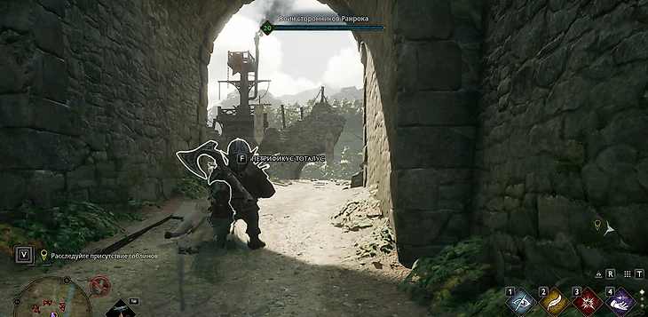 Рядом с башней разместились враждебные гоблины. Профессор Фиг попросит разузнать, что они задумали. Теперь игра обучит вас скрытному устранению врагов с помощью заклинания «Петрификус Тоталус». Механика проста – подбирайтесь к врагу со спины в невидимости (использовав «Дезиллюминационное заклинание»/Зелье невидимости) и нажимайте F/квадрат/Х (здесь и далее управление на ПК/PlayStation/Xbox).