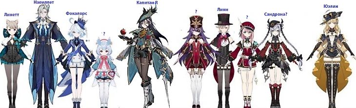 Однако позже это опровергли. Лини (Пиро лучник), Линетт (Анемо мечница) и Фремине (Крио двуручник) – три разных персонажа. Они каким-то образом связаны с Арлеккино, возможно, они не родные братья и сестра, а воспитанные в доме очага сироты.
