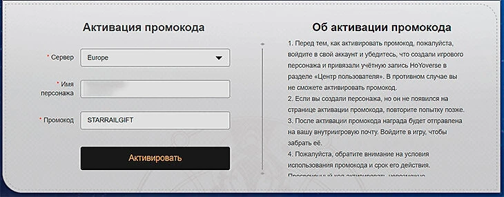 Куда ввести промокод Honkai Star Rail