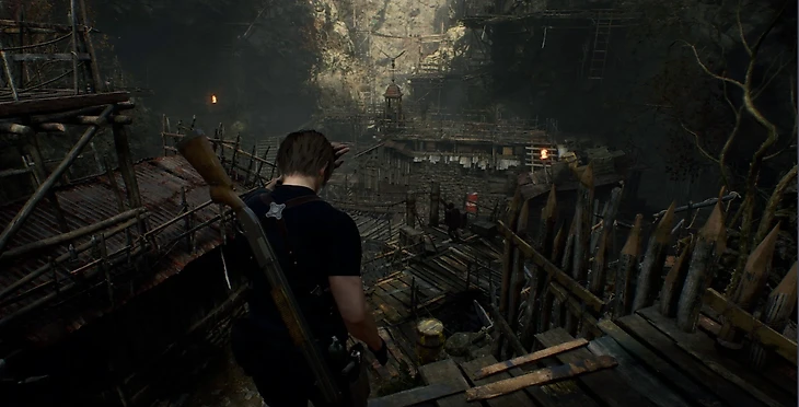 На вас нападет Ганадо с бензопилой и несколько обычных врагов. Заманивайте противника с бензопилой в капканы и атакуйте, пока он пытается освободиться. Также можете вернуться к алтарю и побежать вверх по ступням, там находится мина растяжкой, на которой можно взорвать врагов.