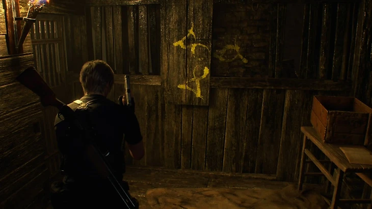 В ремейке игры RE4 вам встретятся различные головоломки. В одной из них, в начале четвертой главы, перед вашими глазами будет карта возле святилища. На ней будет выделены большая и малая пещеры, а заданием будет посетить эти места и решить там головоломку с дисками.