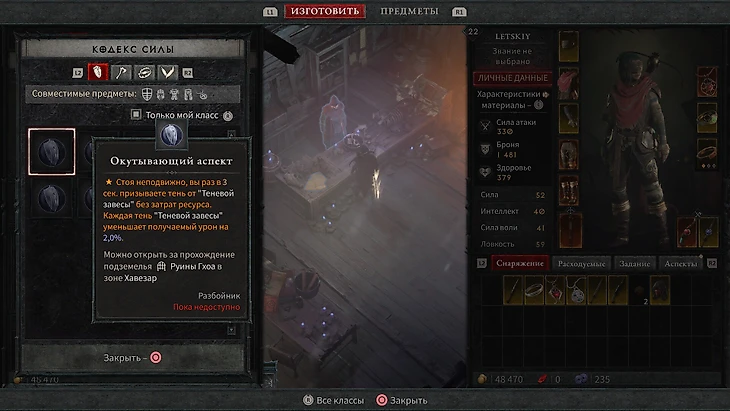 А разбойник усилит доспехи «Окутывающим аспектом». Теперь он получит щит, если простоит на месте 3 секунды.