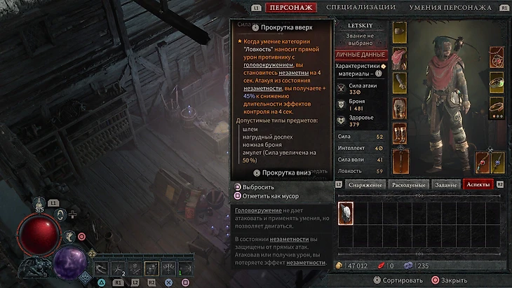 Аспекты – модификаторы для улучшения редкой и легендарной экипировки. Например, друид активирует «Воющий в ночи аспект» и прокачает оружие способностью «Кровавый вой». Она повышает вероятность критического урона на 5%.