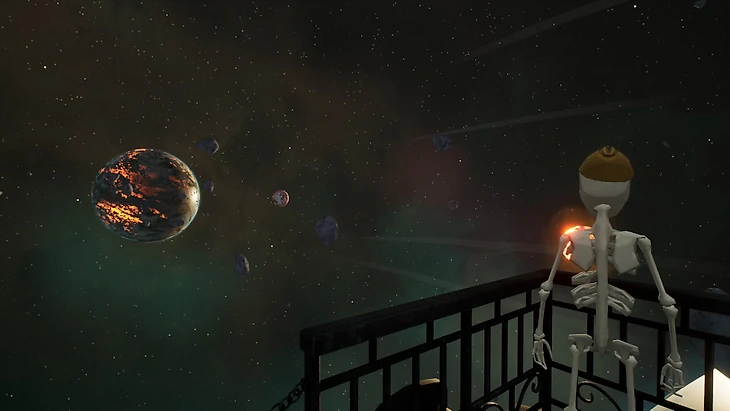Локации разнообразные и атмосферные. Когда герой окажется в поезде, который летит по космосу, одновременно чувствуешь покой и вселенскую тоску. Скелеты вокруг грустят по семье и надеются на светлое будущее. За окном планеты кружат вокруг солнца, звезды гаснут, метеориты пролетают мимо вагонов. Завораживающее зрелище.
