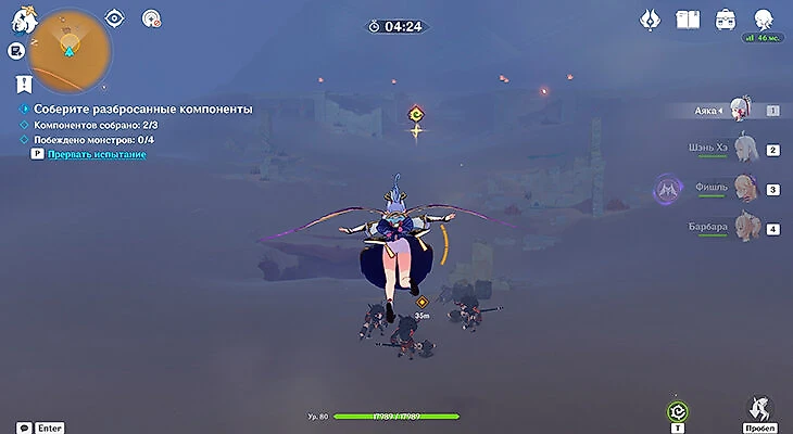 Побеседуйте со Шрией и отправляйтесь в пустыню. Первое испытание начнется после диалога двух НПС. В нем увеличен урон от катализаторов – на 20%. Будет две волны врагов – Пиро слаймы и Гео моровики и плесенники.