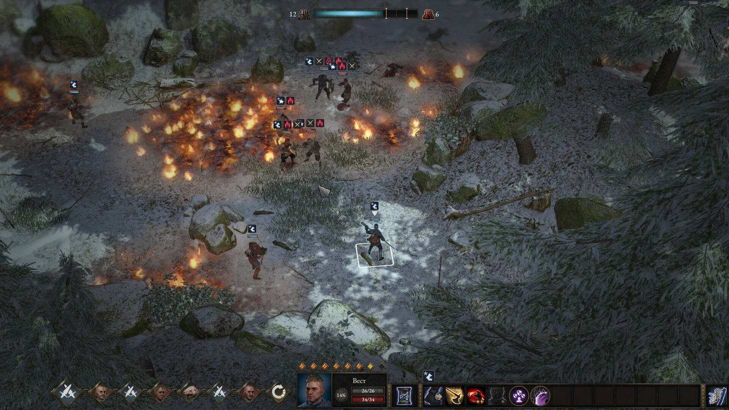 В Wartales достойный визуал. Герои бродят по уютным полям, карабкаются по заснеженным горам, исследуют гробницы и чумные пещеры – каждый биом атмосферный и полон деталей.