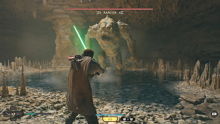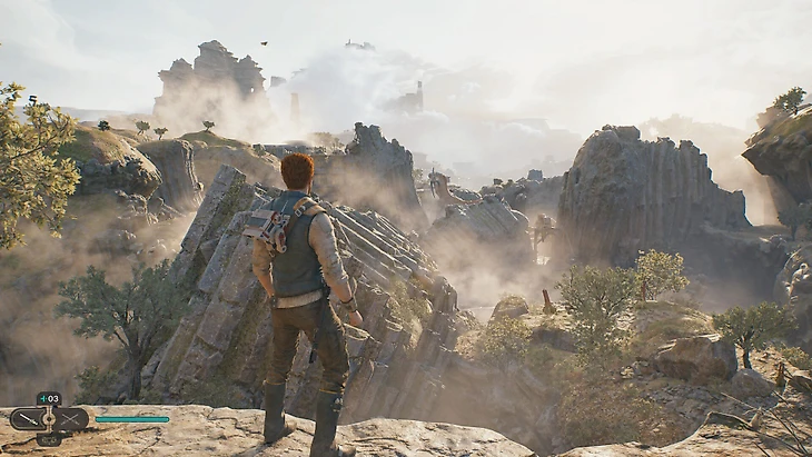 Локации выросли. Они круто выглядят и по размаху напоминают God of War. К примеру, на планете Кобох полуоткрытый мир с десятками точек интереса. Герой найдет джедайские храмы с головоломками, сюрреалистичное испытание Силы, большие секции для паркура, огромных мини-боссов и даже лагерь с дюжиной дроидов.