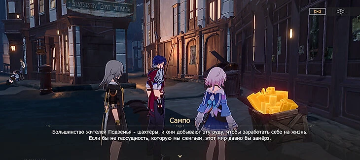 А еще расскажет о желтых кристаллах, которых очень много повсюду. Это геосущность, которую раньше добывали шахтеры, но с шахтами много проблем.
