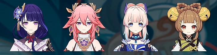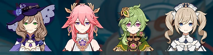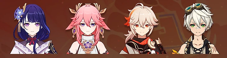 Команда 4: Райдэн, Яэ Мико, Нахида/Мона, Кокоми/Барбара или Бай Чжу/Яо Яо. Нужно взять три разных элемента, чтобы запускать бутоны.