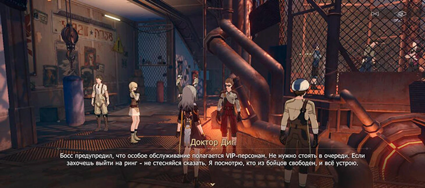 Побеседуйте с Дигом в бойцовском клубе о полученном вип-статусе и согласитесь принять участие в поединке.