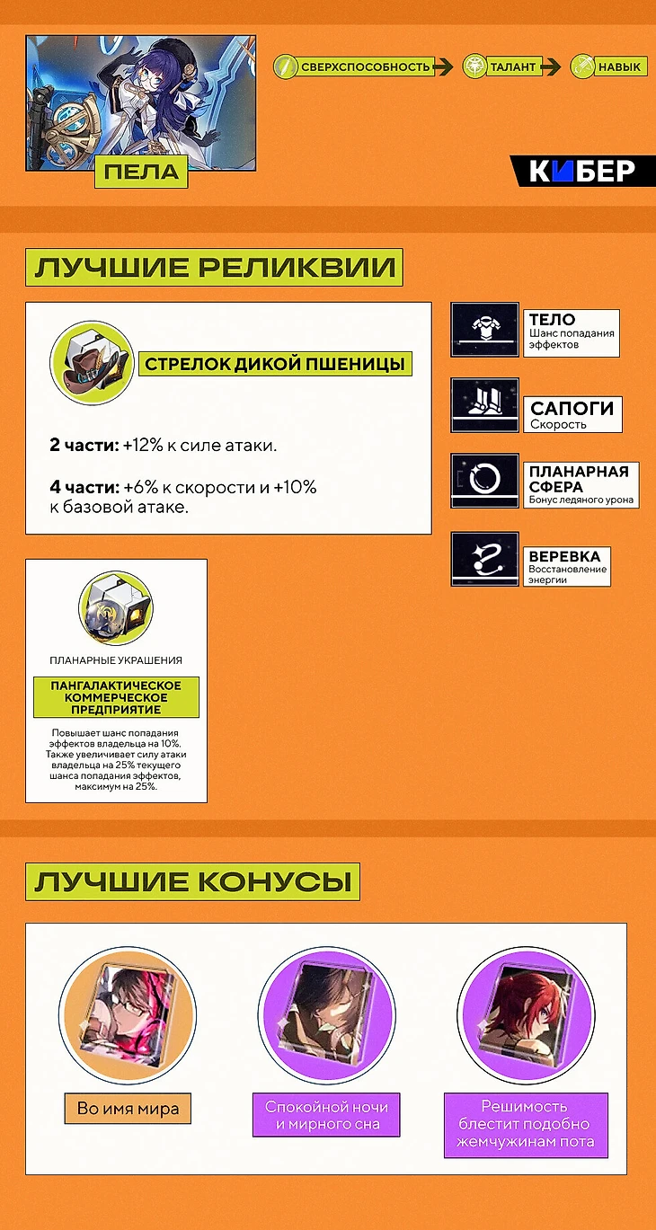 Пела – замена Вельту, саппорт-дебаффер. Ее сверхспособность понижает защиту соперника и снимает с него усиления, а пассивные навыки позволяют быстрее накапливать энергию на ульту. Она может закрыть слабые места второй команды в Зале забвения, но для обычной игры лучше взять второго баффера в команду.